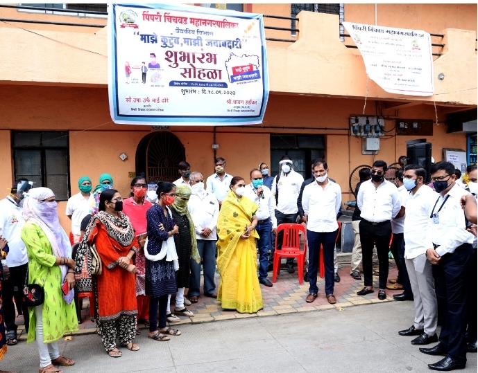 महापौर उषा उर्फ माई ढोरे यांच्या अध्यक्षतेखाली झालेल्या या कार्यक्रमाला उपमहापौर तुषार हिंगे, नगरसेवक संतोष कांबळे, अतिरिक्त आयुक्त संतोष पाटील़, अति. आरोग्य वैदयकीय अधिकारी डॉ. पवन साळवे , महिला वैदयकीय अधिकारी डॉ. वर्षा डांगे, सांगवी रुग्णालयाच्या प्रमुख डॉ. विनया आंबेडकर, सहा.आयुक्त अण्णा बोदडे, संदिप खोत, सिनेट सदस्य संतोष ढोरे आदी उपस्थित होते. त्याचप्रमाणे, “माझे कुटुंब -माझी जबाबदारी” या कार्यक्रमाचा प्रभाग क्र. 17 शिवनगरी, बिजलीनगर येथून ही आज शुभारंभ करण्यात आला. या उपक्रमासाठी गृहभेट देवून तपासणी करणाऱ्या तीन सदस्यीय टीम नेमण्यात आल्या असून या टीमद्वारे सत्तारूढ पक्षनेते नामदेव ढाके यांच्या कुटुंबाची तपासणी करून अभियानाची सुरुवात झाली. या कार्यक्रमावेळी, महापौर उषा उर्फ माई ढोरे, सत्तारूढ पक्षनेते नामदेव ढाके, ब प्रभाग अध्यक्षा करुणाताई चिंचवडे, नगरसेवक राजेंद्र गावडे, बाळासाहेब ओव्हाळ, सुरेश भोईर, मोरेश्वर शेडगे, स्वीकृत सदस्य बिभीषण चौधरी, अतिरिक्त आयुक्त संतोष पाटील, प्रशासन अधिकारी अण्णा बोदडे, ब प्रभाग अधिकारी प्रशांत जोशी, डॉ. सुनील जॉन, डॉ. विनादेवी गंभीर, डॉ. किशोरी नलावडे, डॉ. प्रियांका सर्वज्ञ, आदेश नवले, योगेश चिंचवडे, प्रमोद चौधरी, शंकर पाटील, प्रदीप पटेल, कैलास रोटे, वसंत नारखेडे, संजय माळी आदी उपस्थित होते.