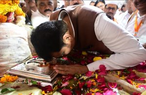 पुणे दि.२०- आषाढी पालखी सोहळ्यानिमित्त मुख्यमंत्री देवेंद्र फडणवीस यांनी भवानी पेठेतील पालखी विठ्ठल मंदिरात संतश्रेष्ठ श्री ज्ञानेश्वर महाराज पादुकांचे दर्शन घेतले. मंदिरात त्यांच्या हस्ते पालखीची पूजा झाली.