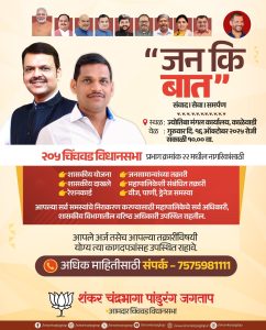 या संदर्भात आमदार शंकर जगताप म्हणाले की, “जन की बात” या कार्यक्रमाच्या माध्यमातून चिंचवड विधानसभा मतदारसंघातील नागरिकांसाठी देशाचे लोकप्रिय पंतप्रधान नरेंद्र मोदी यांनी संवाद, सेवा आणि समर्पण हा दिलेला मुलमंत्र प्रत्यक्षात अमलात आणण्याचा प्रयत्न होत आहे. शहरवासीयांच्या त्या त्या भागातील नागरिकांच्या तक्रारी व समस्या तातडीने सोडविल्या जाव्यात. त्यांच्या अडचणी दूर करून त्यांचा परिसर व संपूर्ण शहर स्वच्छ, सुंदर व विकसित कसे राहील, हा हेतू साध्य होत आहे. त्याकरिता जास्तीत जास्त नागरिकांनी या “जन की बात” कार्यक्रमात उपस्थित राहून आपल्या समस्या सोडवून घ्याव्यात, असे आवाहन त्यांनी केले.